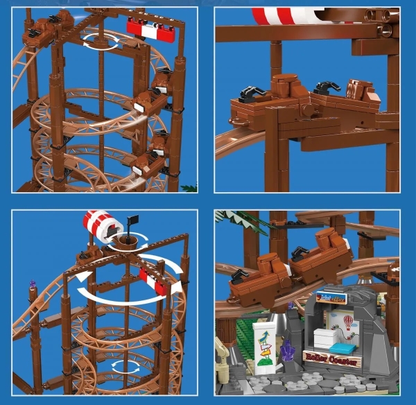 Es wird rasant! Die Doppel-Helix Achterbahn von Mould King bringt pure Action in deinen Freizeitpark. Mit ihren braunen Schienen und der einzigartigen Piraten-Optik sorgt sie für aufregende Fahrten, bei denen die Wagen erst hoch hinaus schießen, um dann in schwindelerregendem Tempo wieder nach unten zu sausen. Der liebevoll gestaltete Bahnhof, der einem Piratenschiff nachempfunden ist, lädt die Gäste zum Ein- und Aussteigen ein – ein echter Hingucker!