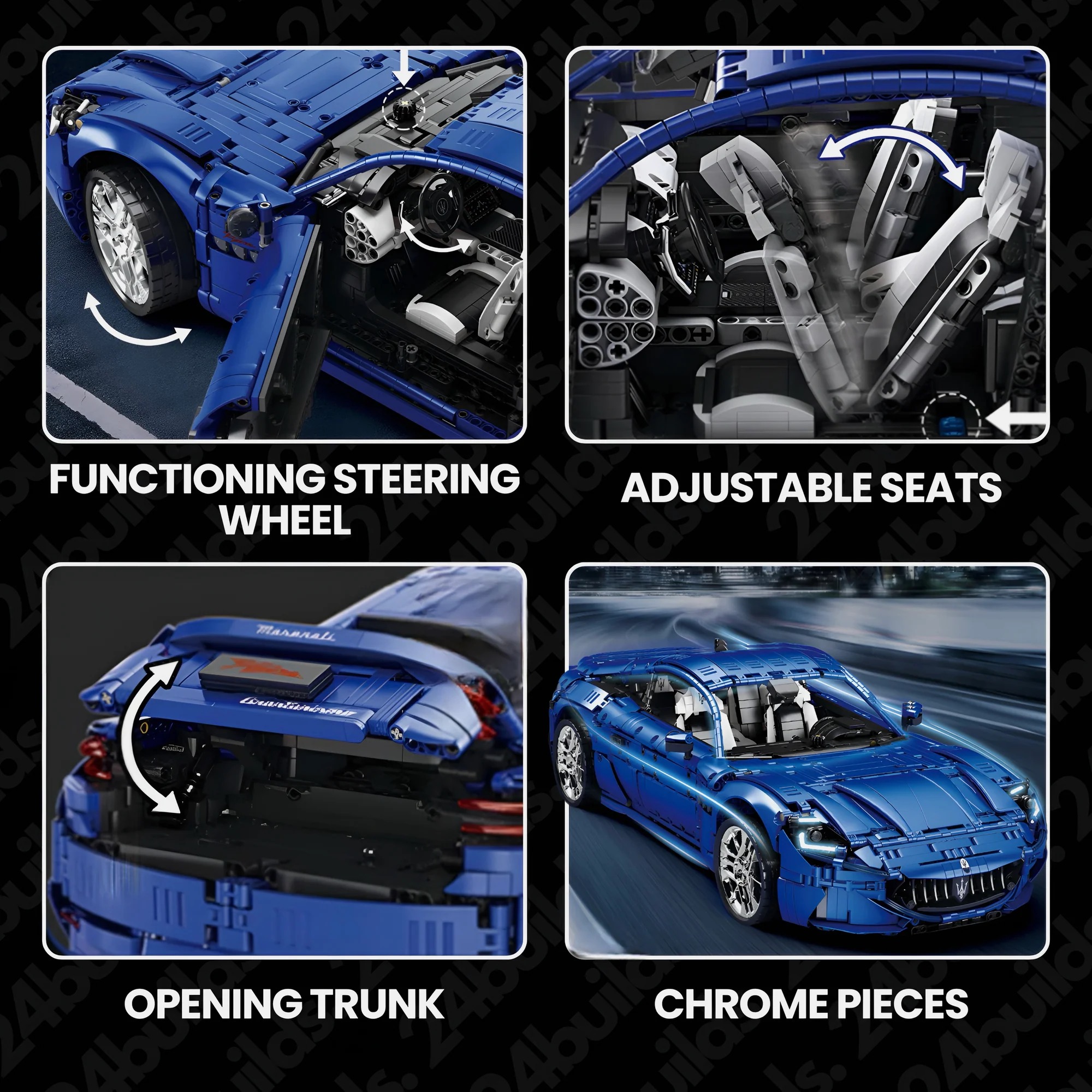 Italienische Eleganz in reinster Form – der Reobrix Maserati GranTurismo (blau) vereint Stil, Präzision und Leidenschaft in einem detailverliebten Klemmbaustein-Modell.
