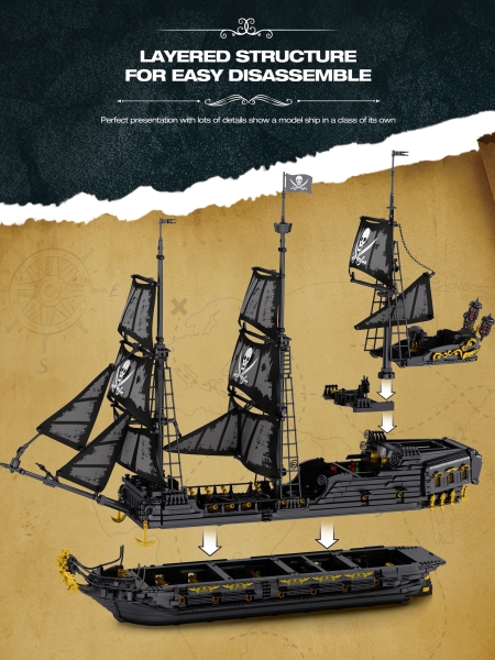 Arrr, ich habe ein Glas mit Dreck! Fühle dich wie ein echter Pirat mit der Black Pearl von Reobrix! Dieses fantastische Modell des legendären schwarzen Segelschiffs mit seinen eleganten goldenen Kontrasten ist perfekt als Display-Set für deine Sammlung. Mit 4.708 Klemmbausteinen bietet die Black Pearl stundenlangen Bauspaß und beeindruckt durch ihre detaillierte Gestaltung.