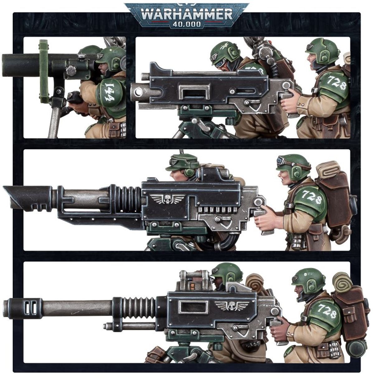 With a range of cosmetic bits like ammo crates, seven interchangeable heads, vox-units, binoculars, and more, you can customize each base for maximum personality and theme. These teams can be deployed as standalone heavy support or integrated into Cadian Shock Troop squads for flexible infantry support.