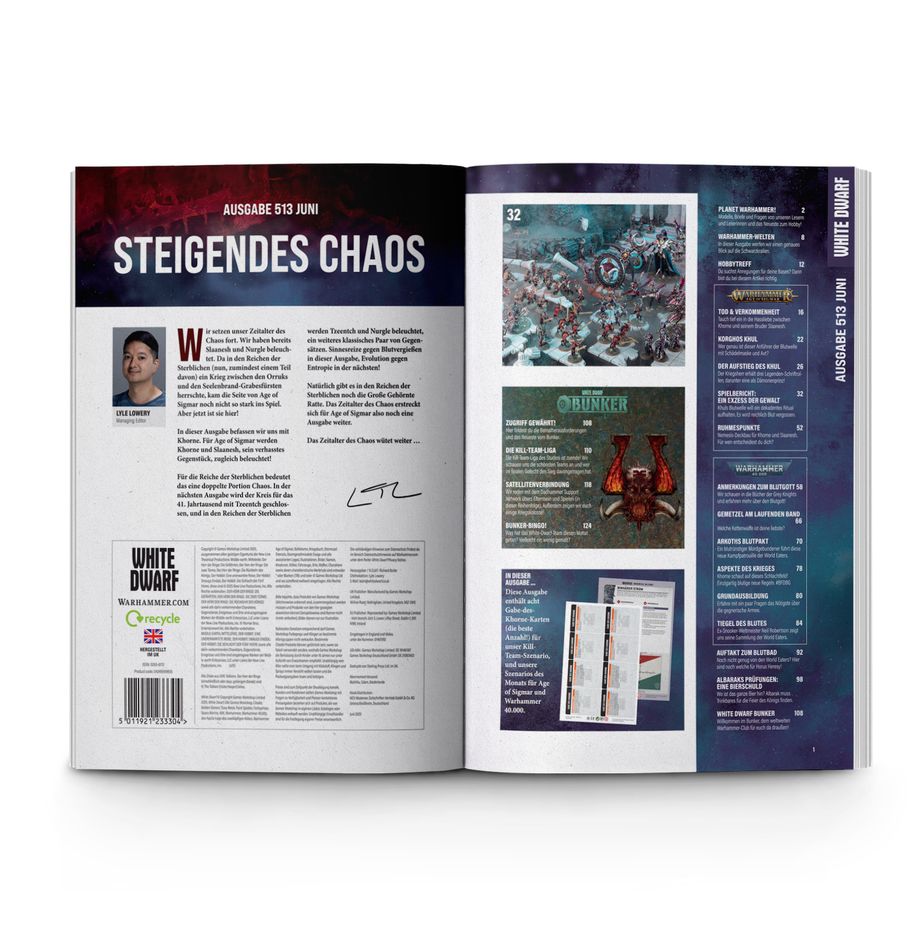 Mit White Dwarf 513 (Juni 2025) erwartet dich eine prall gefüllte Ausgabe des legendären Warhammer-Magazins – vollgepackt mit exklusiven Regeln, spannenden Hintergrundgeschichten, Spielberichten, Hobbytipps und vielem mehr. Egal ob du Fan von Warhammer 40.000, Age of Sigmar oder Warcry bist: Diese Ausgabe liefert dir Inspiration, Tiefe und neuen Spielspaß für alle Systeme.